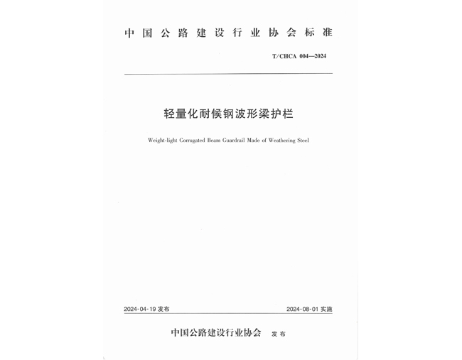 参编中国公路建设行业协会团体标准《轻量化耐候钢波形梁护栏》T/CHCA 004—2024
