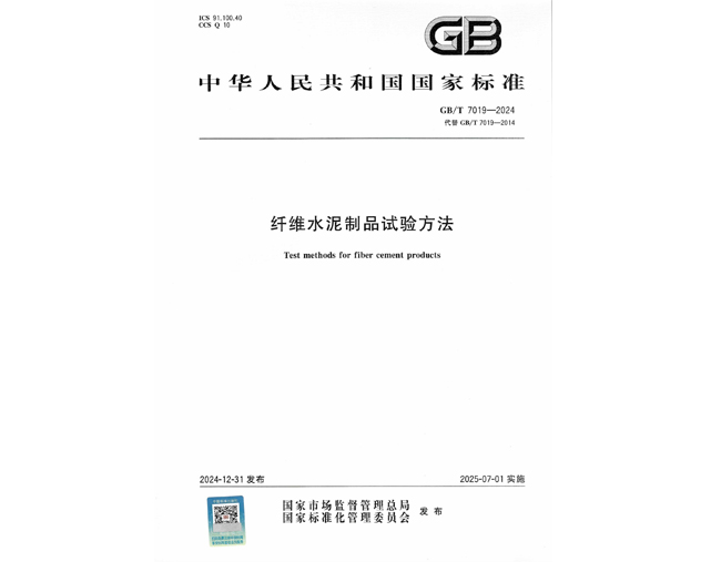 参与修订中华人民共和国国家标准《纤维水泥制品试验方法》GB/T 7019—2024
