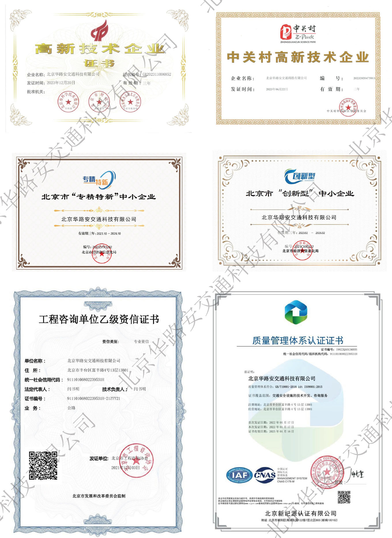 北京华路安交通科技有限公司(简称“北京华路安”)位于北京市丰台区中关村科技园,以开展交通工程科研与技术咨询、道路安全评价、交通安全新产品研发与设计为主营业务,拥有“高新技术企业”、“专精特新中小企业”、“工程咨询资信”等资质证书。