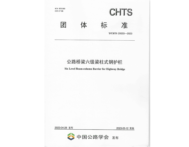 参编中国公路学会团体标准《公路桥梁六级梁柱式钢护栏》T/CHTS 20033-2023
