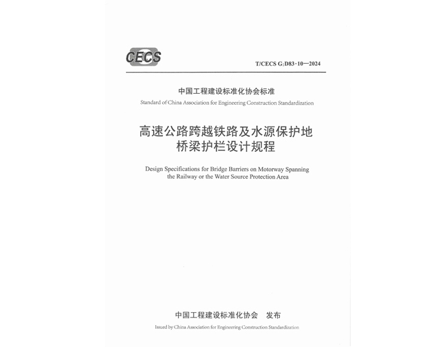 主编中国工程建设标准化协会团体标准《高速公路跨越铁路及水源保护地桥梁护栏设计规程》T/CECS G:D83-10—2024