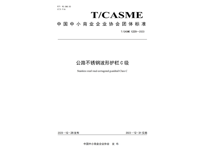 参编中国中小商业企业协会团体标准《公路不锈钢波形护栏C级》T/CASME 1229—2023
