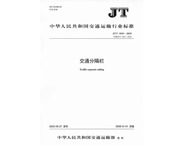 参与修订中华人民共和国交通运输行业标准《交通分隔栏》JT/T 1033—2025